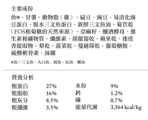 - 含有三文魚油及亞麻籽,當中的奧米加3及奧米加6脂肪酸令毛髮更豐盈