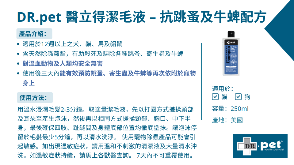 DR.pet 醫立得潔毛液 – 抗跳蚤及牛蜱配方