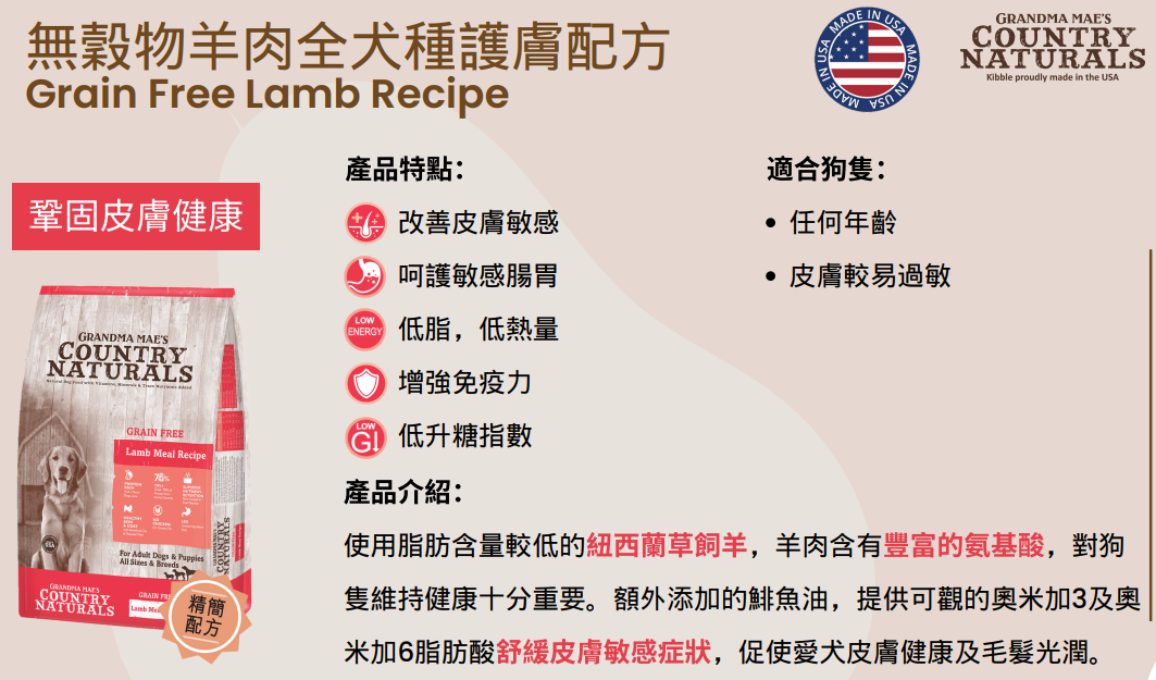 無穀物羊肉全犬種護膚配方