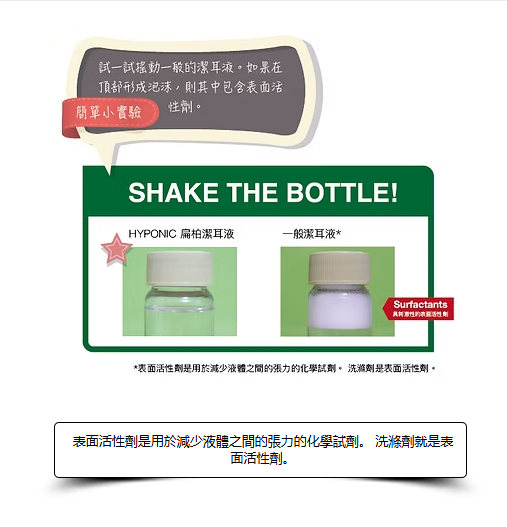 HYPONIC極致低敏扁柏洗耳水用天然成分製造,絕不含表面活性劑。