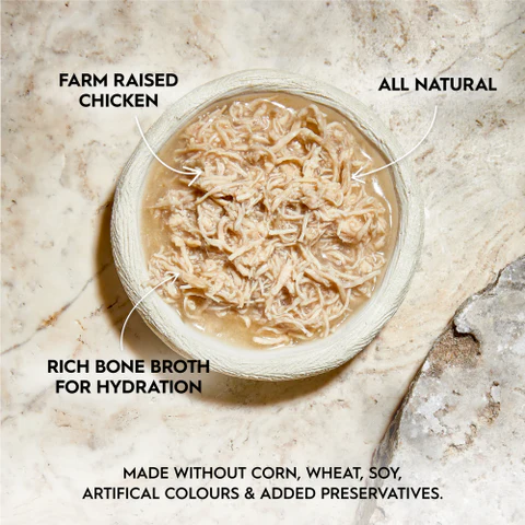 - 新鮮食材浸泡在濃鬱、保濕的雞骨湯中